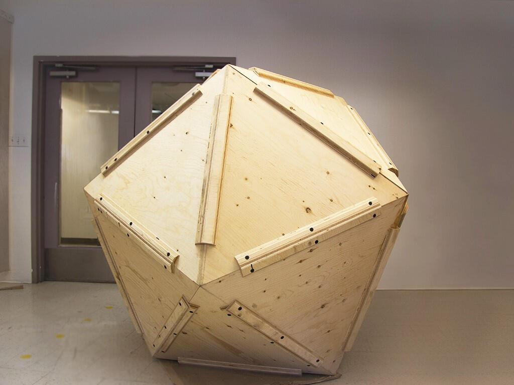 Icosaèdre, 2023-2024, sculpture en contreplaqué et acrylique, 64 x 64 x 64”