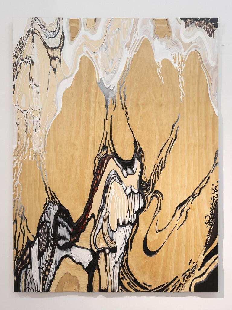 Sans titre, 2022, acrylique et bas-reliefs sur contreplaqué, 48 x 36 x 1 1⁄2” (recto)
