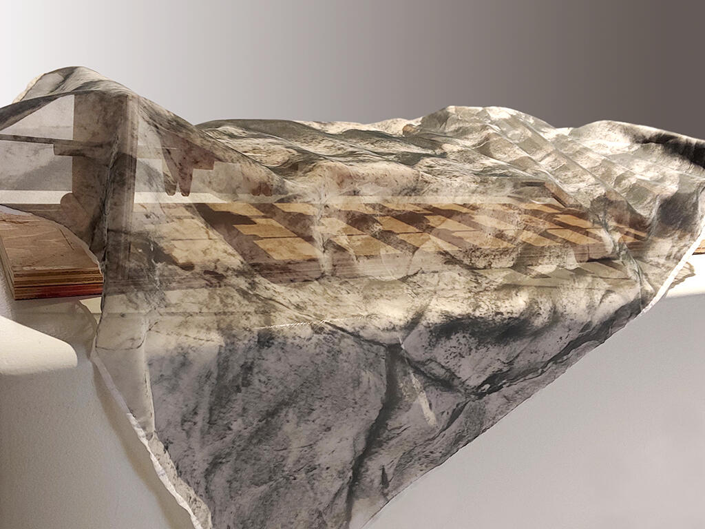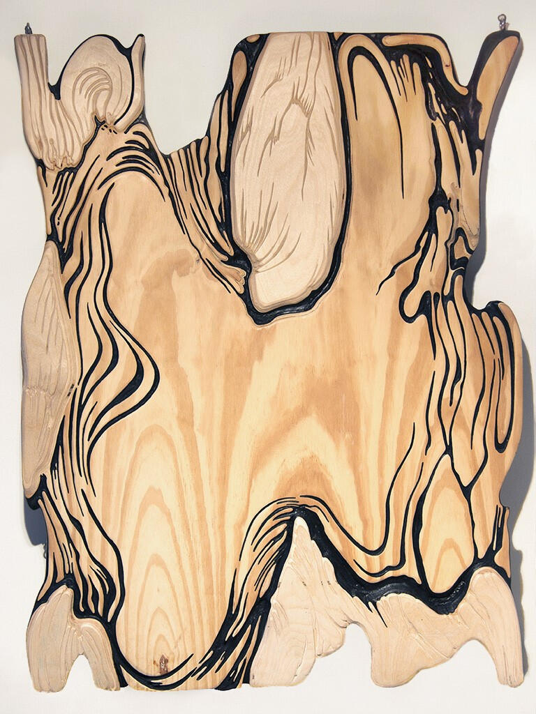 Détours, 2022, médiums mixtes et bas-relief sur contreplaqué, 48 x 36 x 1 1⁄2”